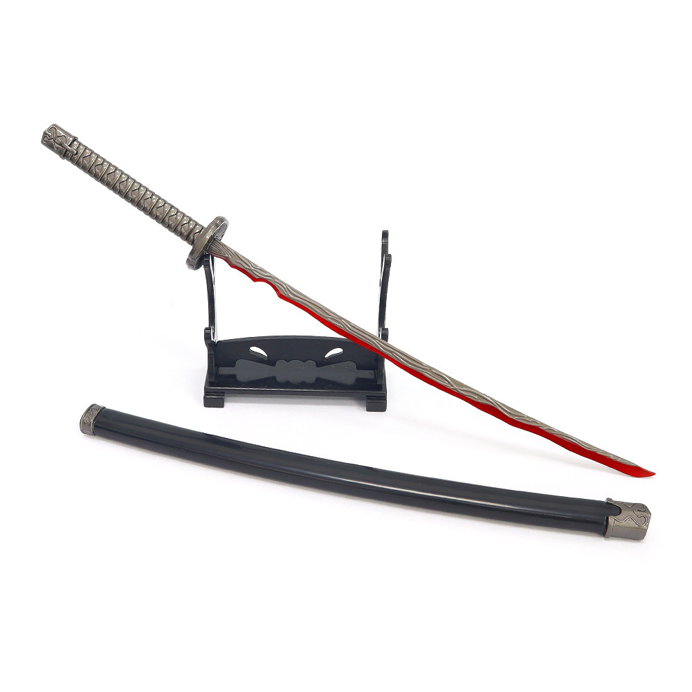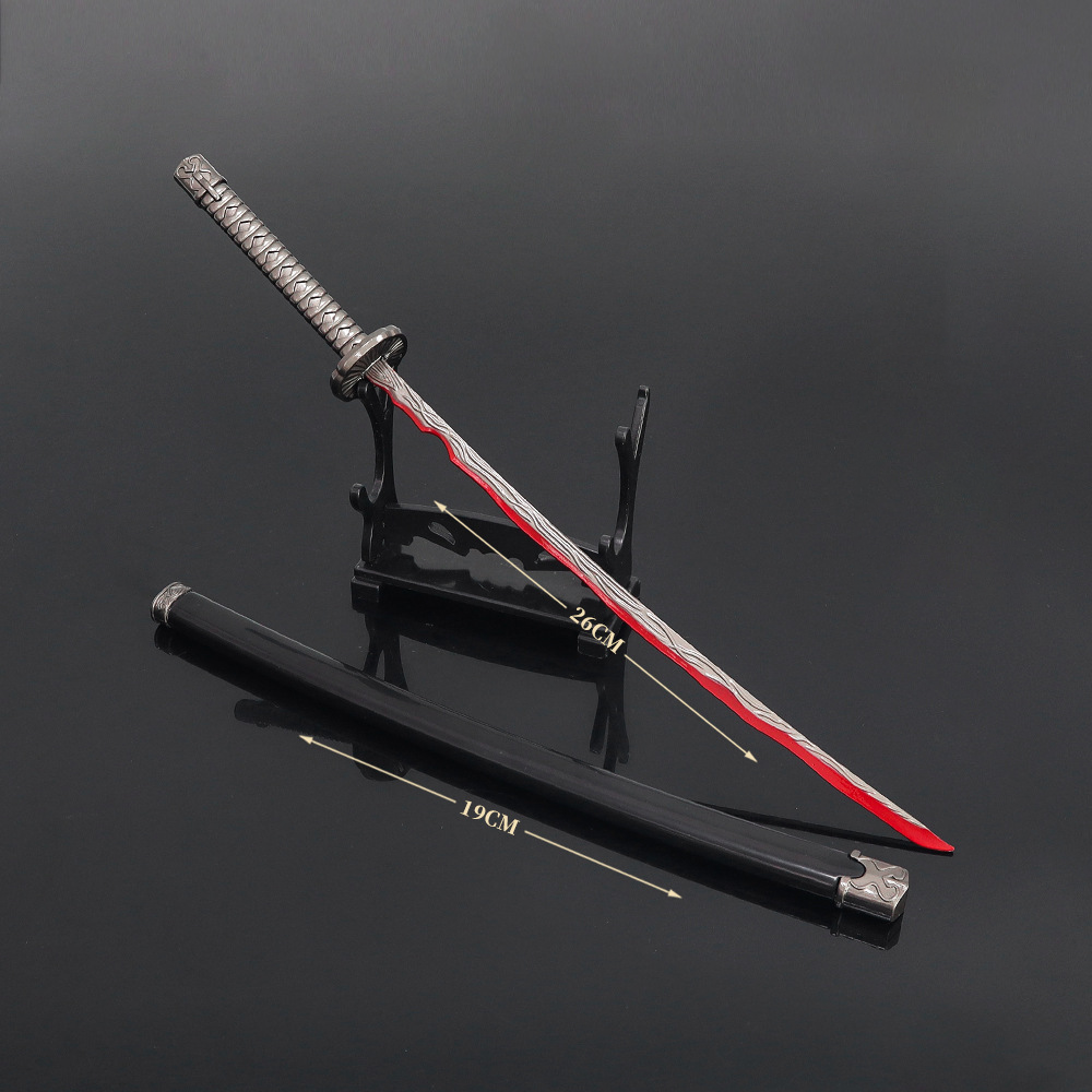 This 26 cm Elden Ring Rivers of Blood Katana is the perfect weapon for any warrior looking for a fierce and powerful weapon. Crafted from superior quality steel, this katana is strong enough to withstand the toughest of battles. The unique design of the blade with its red river motif adorning the blade gives it a menacing look that will strike fear into the hearts of your enemies.26cm Elden Ring Rivers of Blood Katana Features: