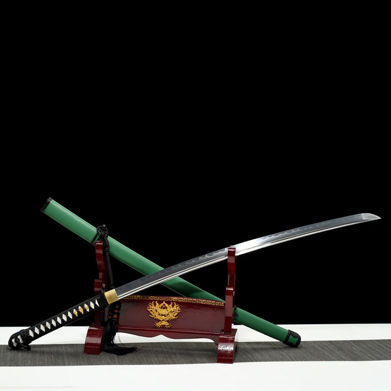 Traditional Crafting: The Green and Black Katana Hand Forged is crafted using traditional forging methods, which create a blade that is both strong and beautiful.