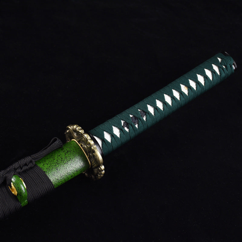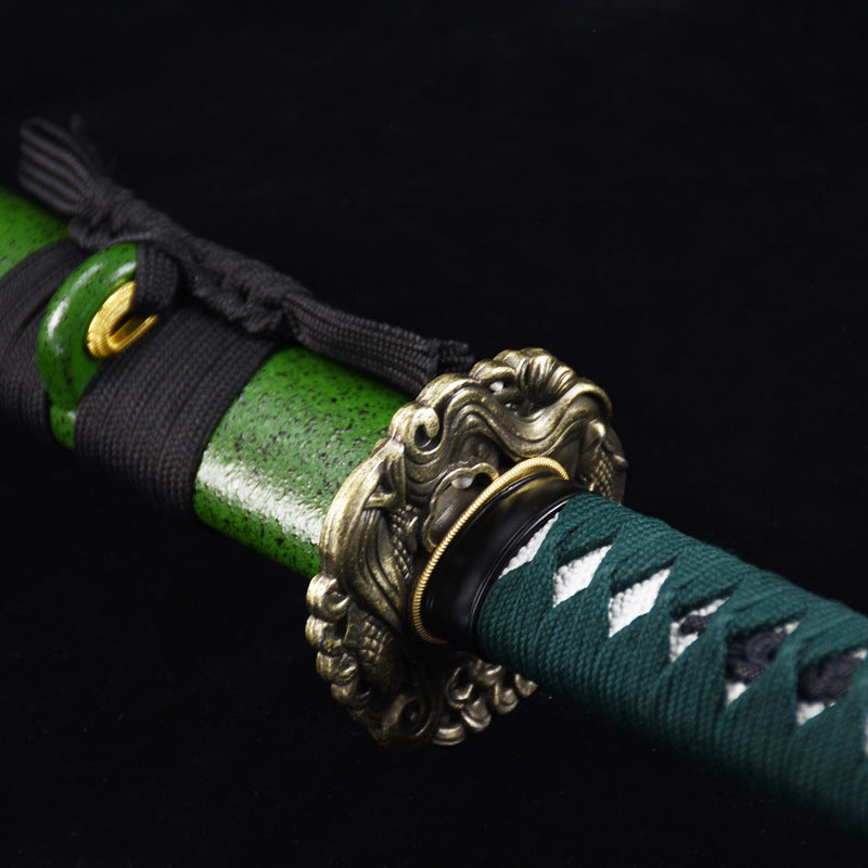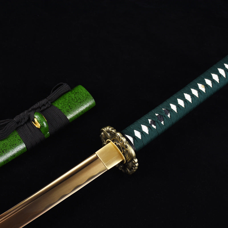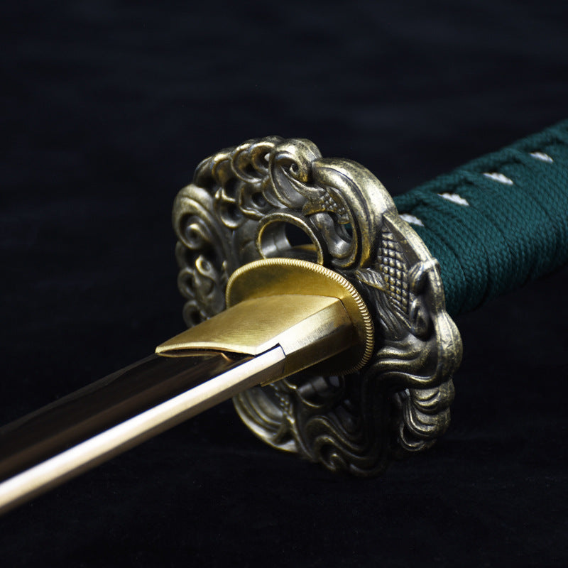 Carbon Steel Green Samurai Sword with Gold Blade Features