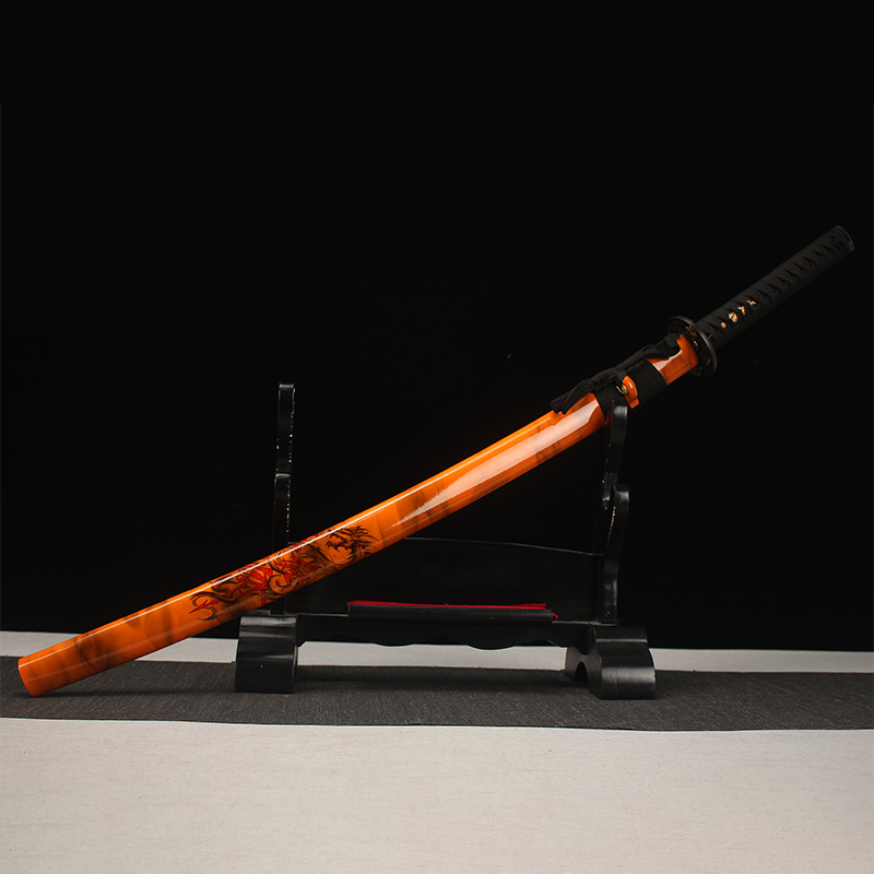 Carbon Steel Orange Real Japanese Sword with Black Handle Description