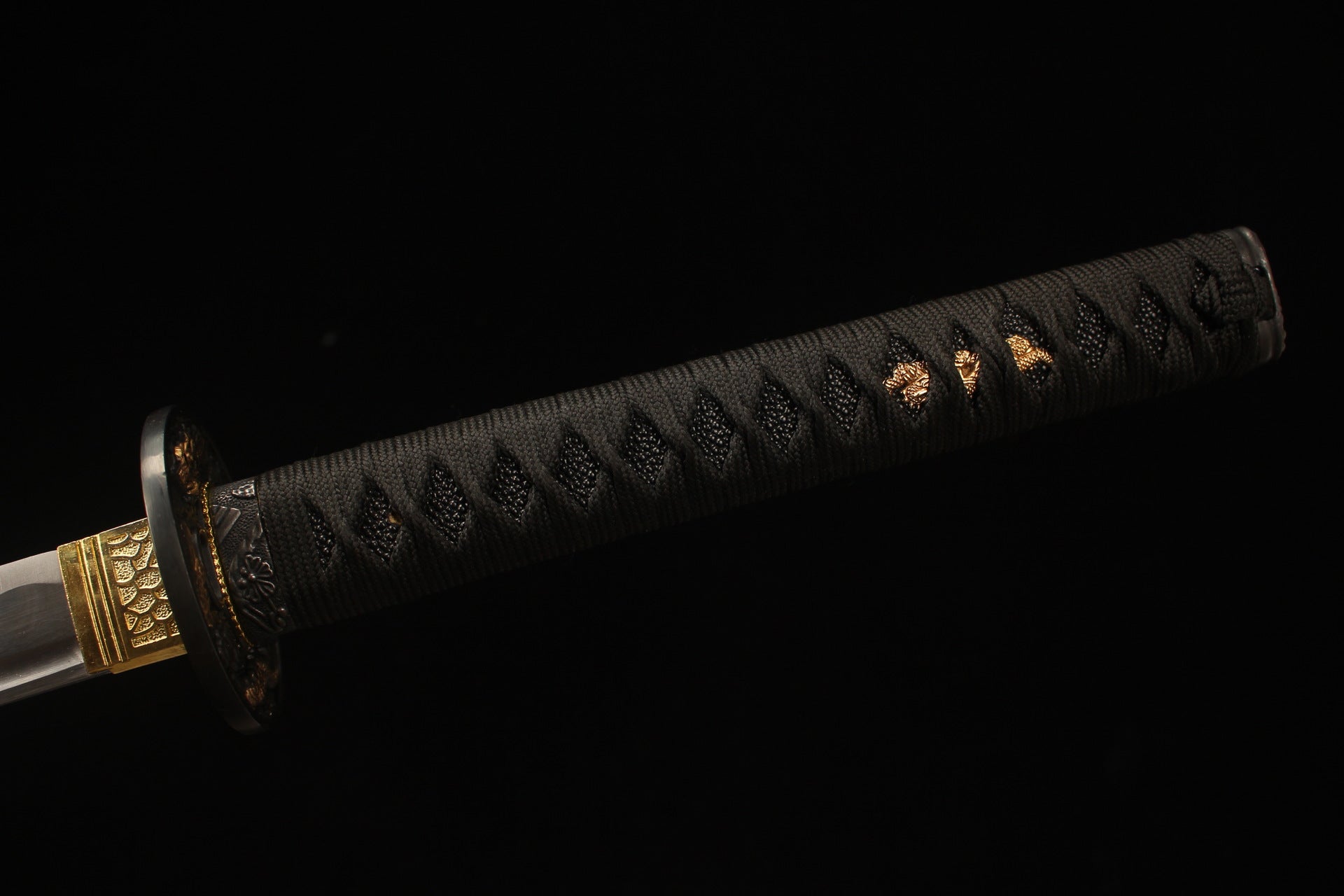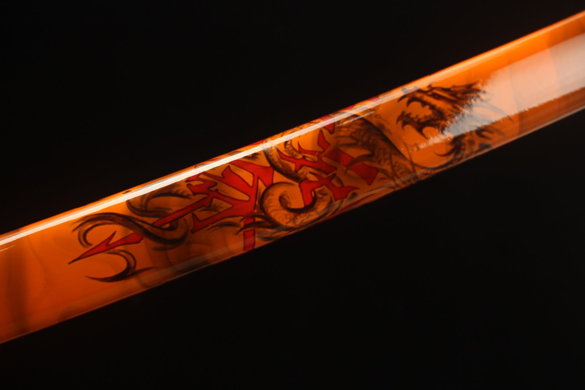 Carbon Steel Orange Real Japanese Sword with Black Handle Features