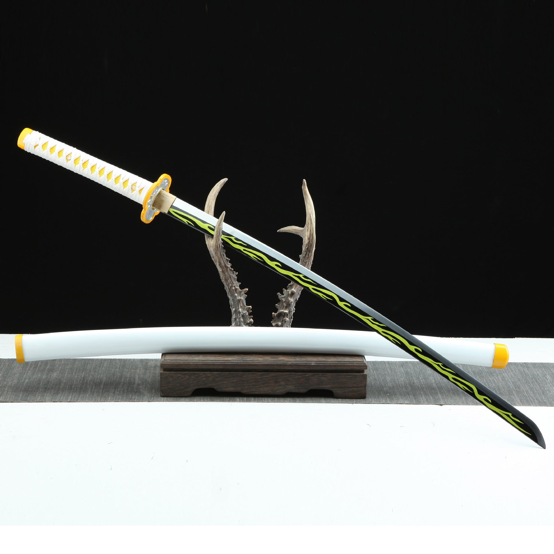 Hand Forged Demon Slayer Carbon Steel Anime Green Katana with White Sheath Features