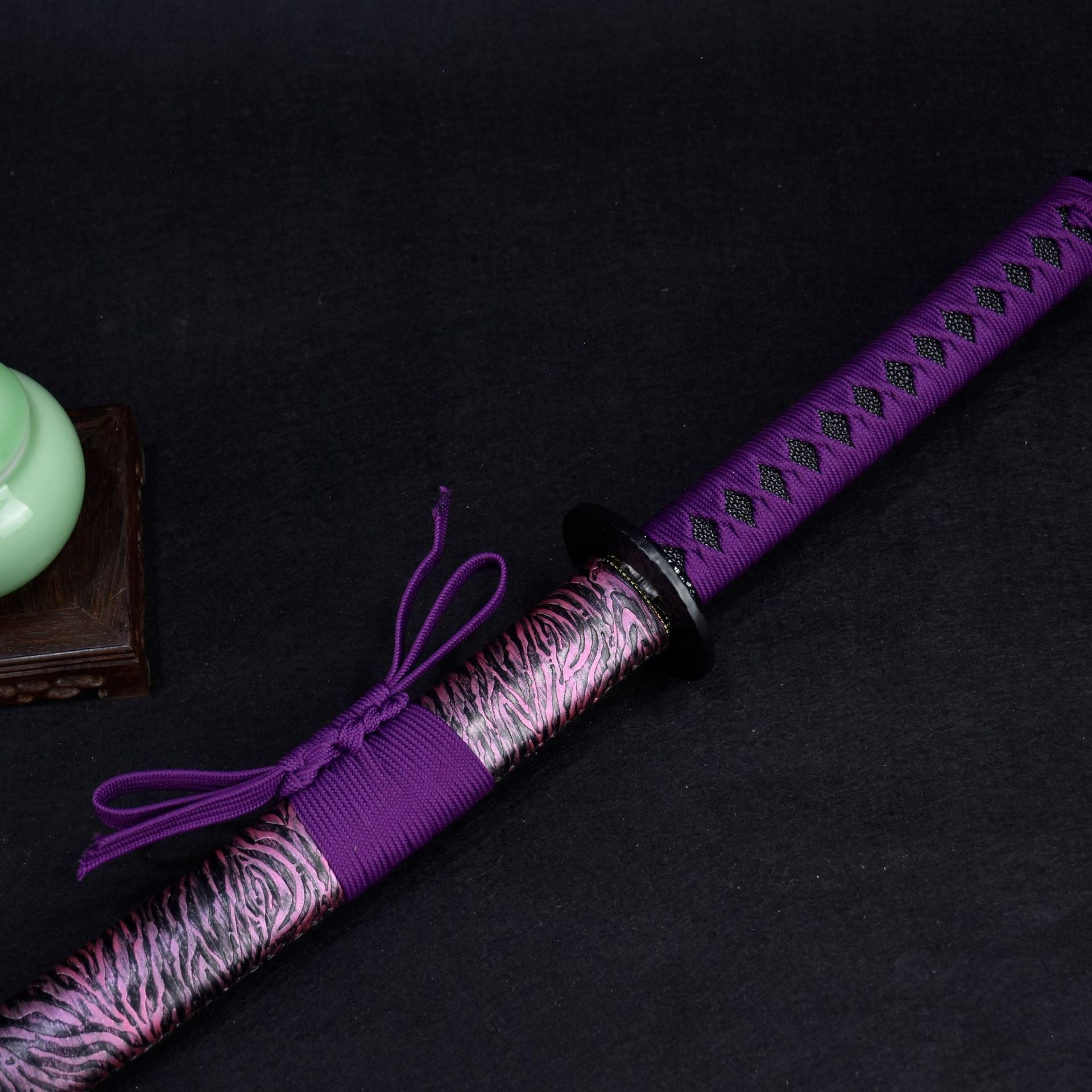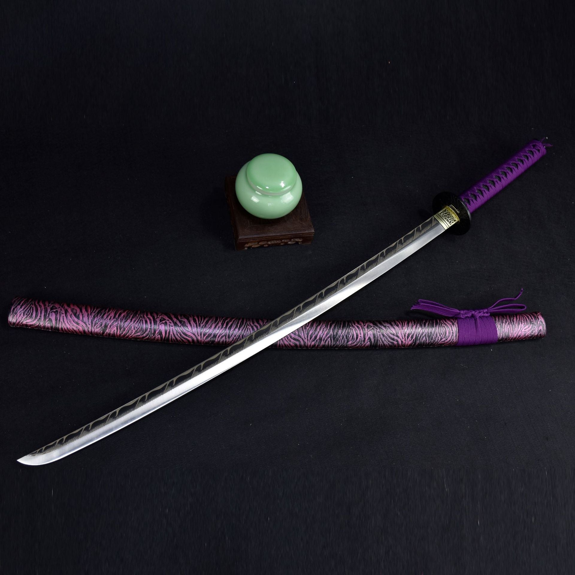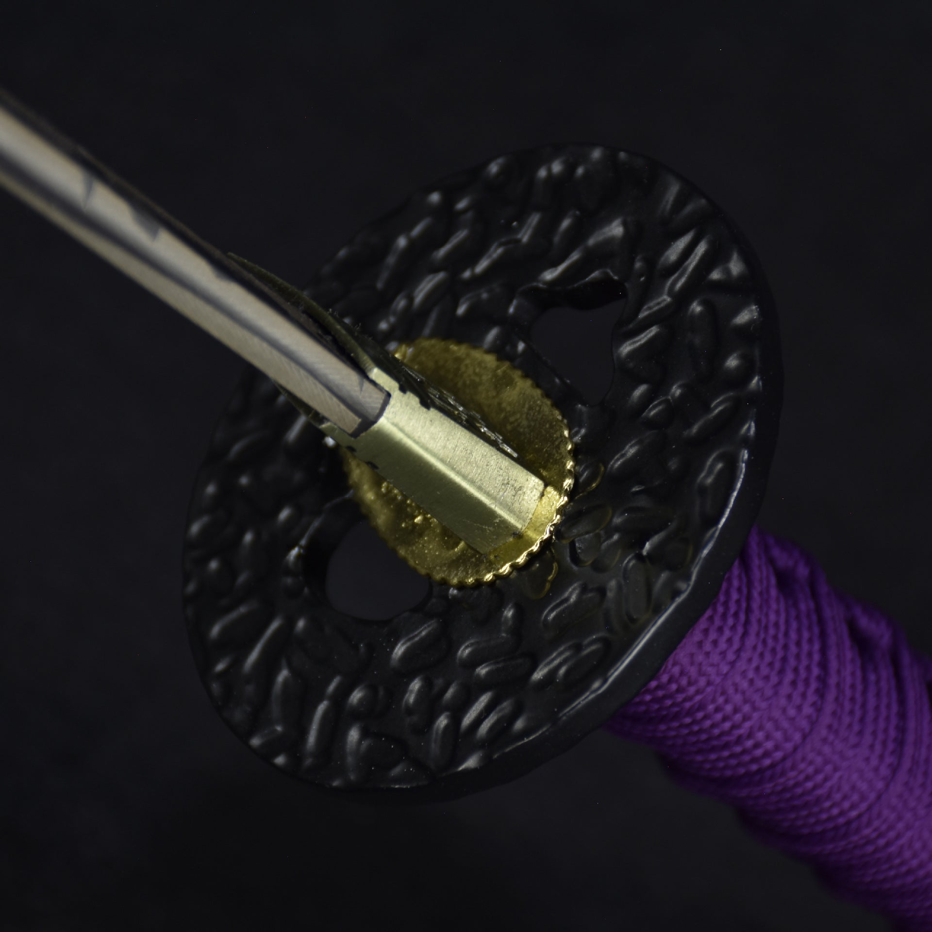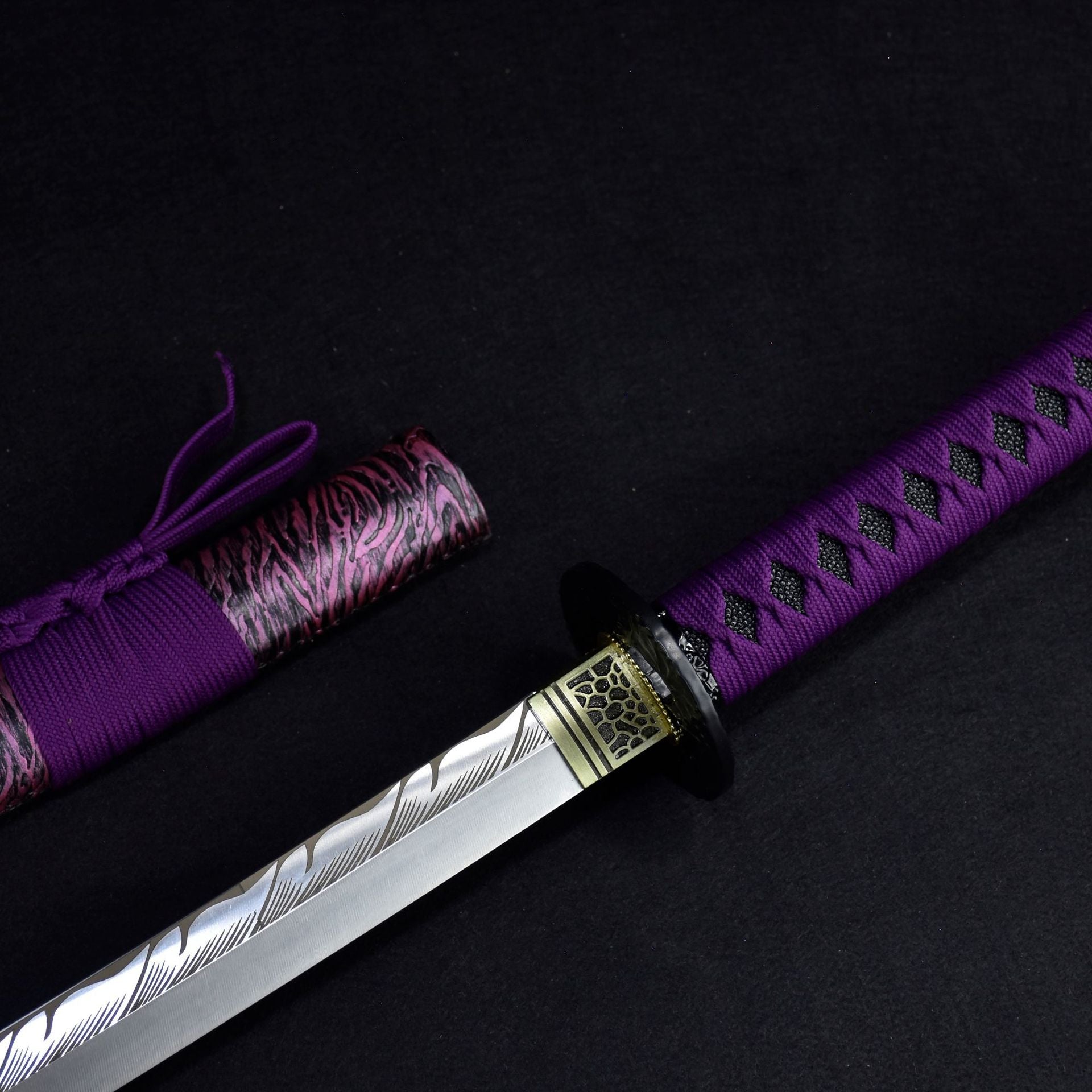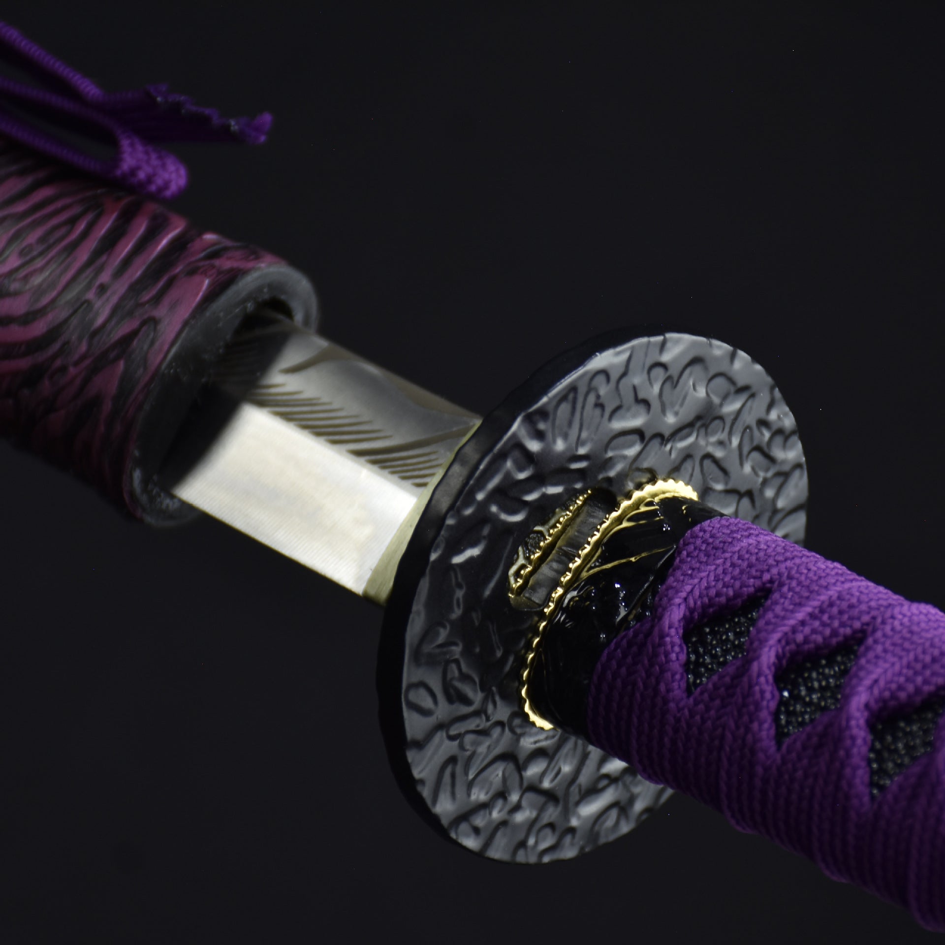 This Dark Purple Katana is a one-of-a-kind piece crafted from handforged stainless steel. It features a sleek dark purple handle and a sharp, double-edged blade that is perfect for both cutting and display. This katana is a truly unique piece and a must-have for any sword collector.
