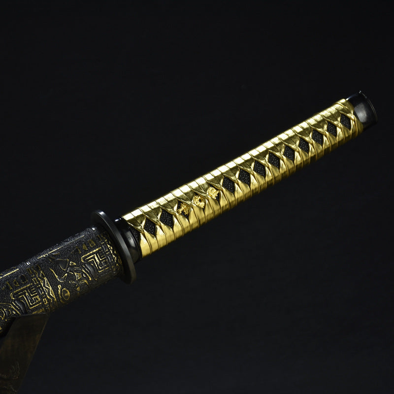 Handmade Metal Katana Sword Black and Yellow Katana Japanese Description