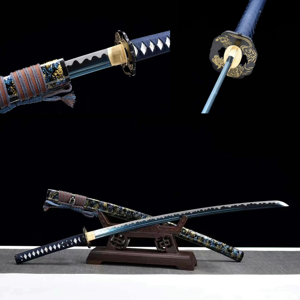 High Manganese Steel Katana Japanese Blue and Gold Katana Description