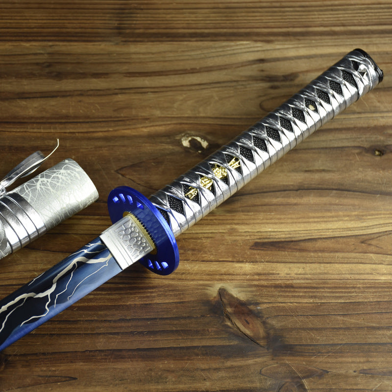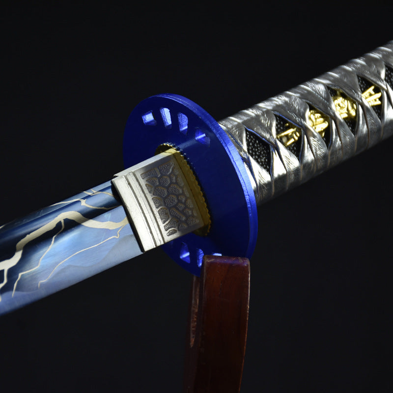 High Manganese Steel Silver White and Blue Katana Japanese Sword Features