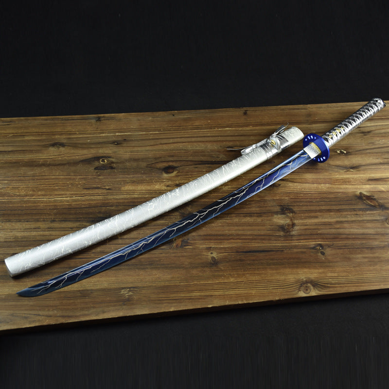 High Manganese Steel Silver White and Blue Katana Japanese Sword