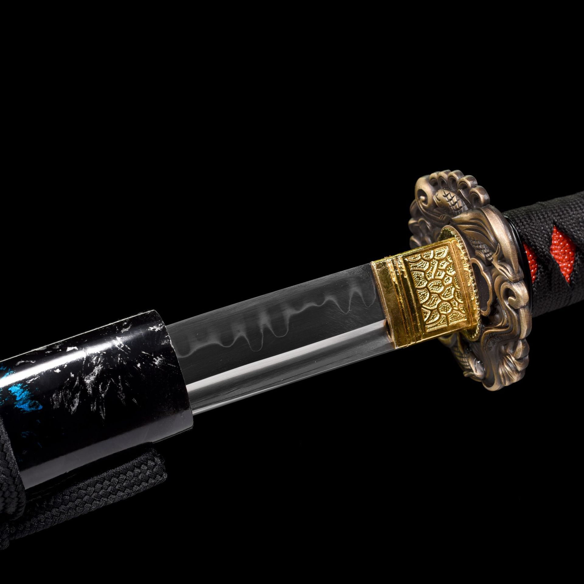 T10 Carbon Steel Blue and Red Samurai Sword Overview